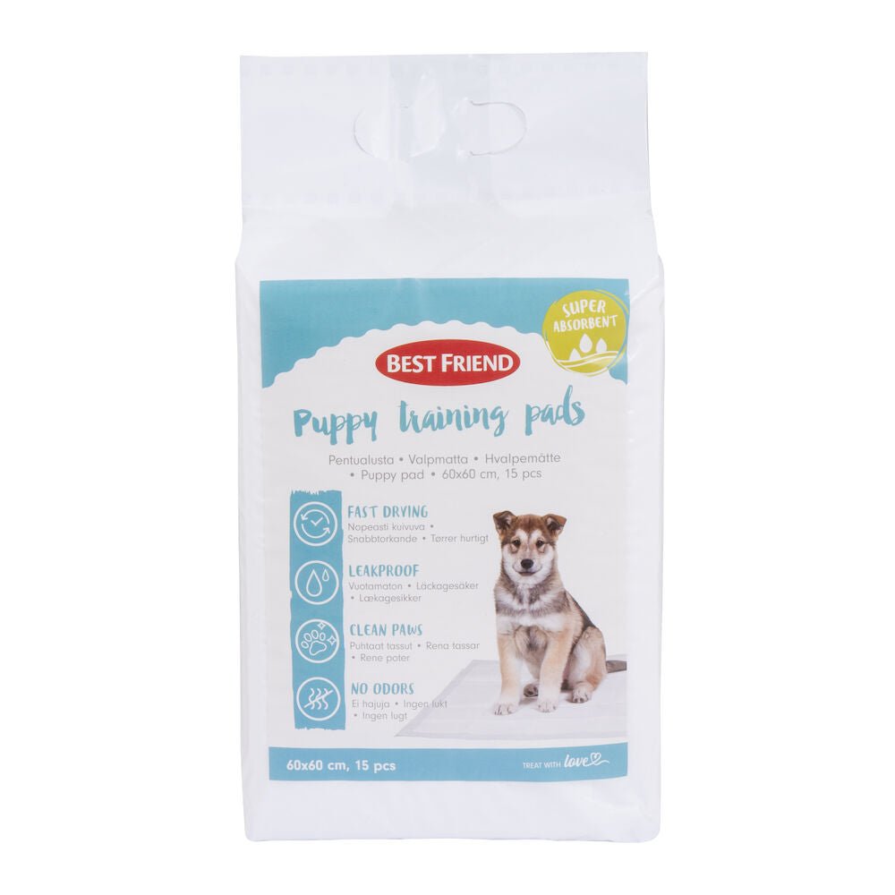 The Best Friend puppy pad is an excellent aid in house-training puppies. The pad’s highly durable, tear-resistance surface layer absorbs liquid quickly and the inner layer effectively absorbs the liquid. The surface of the pad feels pleasantly dry and the thin plastic coating on the base prevents leaks. The pads keep your pet’s paws and the floors dry, and ensures that your home stays clean, hygienic and odour-free.